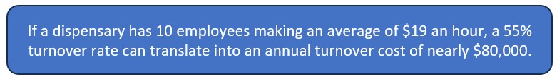 Employee retention is a growing challenge across many industries, but it’s particularly pressing in non-traditional sectors like cannabis. With the rapid growth and ever-evolving nature of the cannabis industry, businesses often find themselves facing high turnover rates. In fact, recent reports show that turnover in the cannabis sector can reach as high as 55%, a significant concern for companies striving to build strong, long-term teams. Turnover is having a significant impact on the bottom line. For example, if a dispensary has 10 employees making an average of $19 an hour, a 55% turnover rate can translate into an annual turnover cost of nearly $80,000.