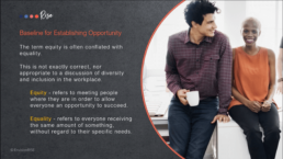 The term equity is often conflated with equality. Equity refers to meeting people where they are in order to allow everyone an opportunity to succeed. Equality refers to everyone receiving the same amount of something, without regard to their specific needs.