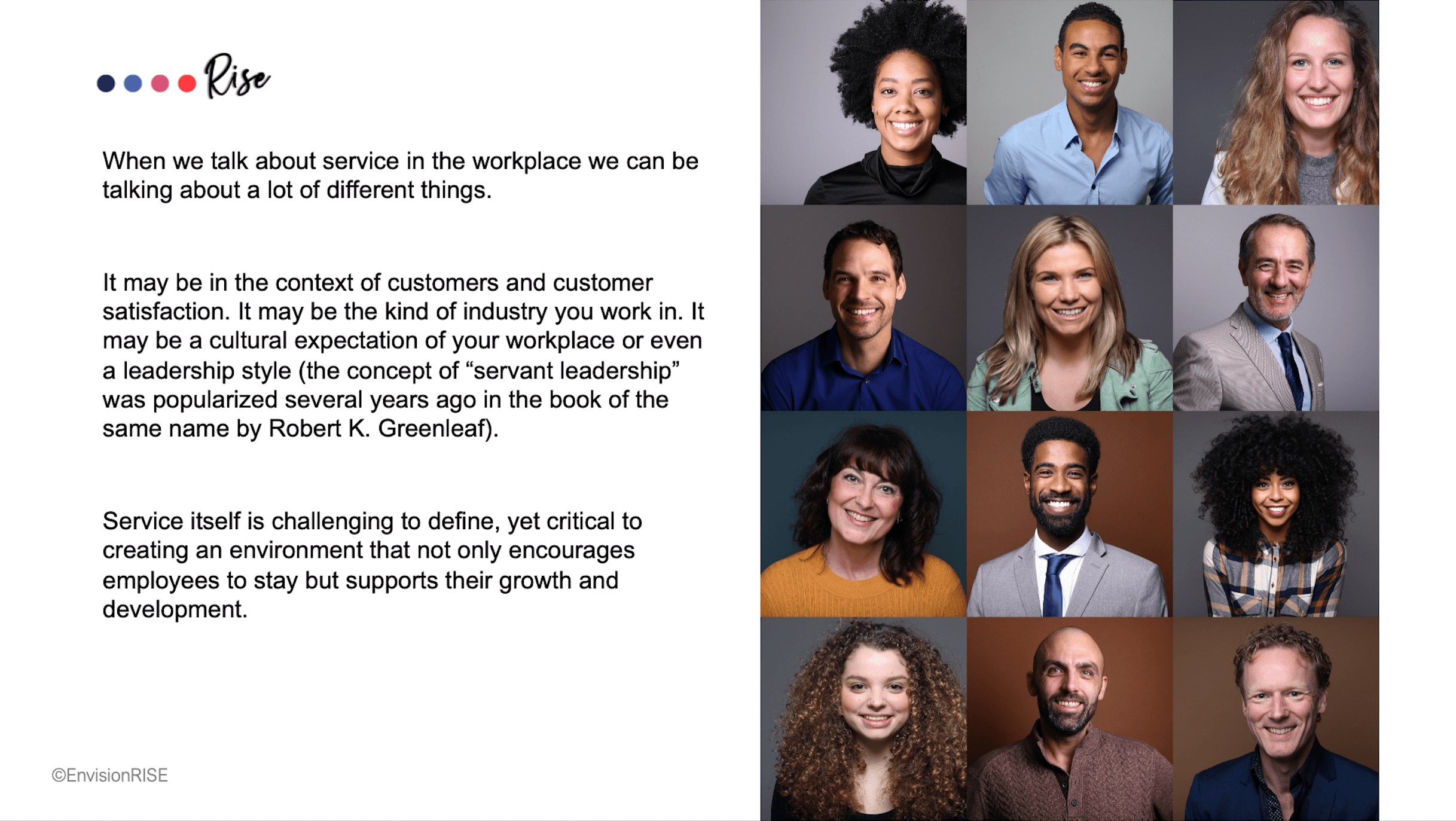 When we talk about service in the we can be talking about a lot of different things. Service itself is challenging to define, yet critical to creating an environment that not only encourages retention but supports growth and development.