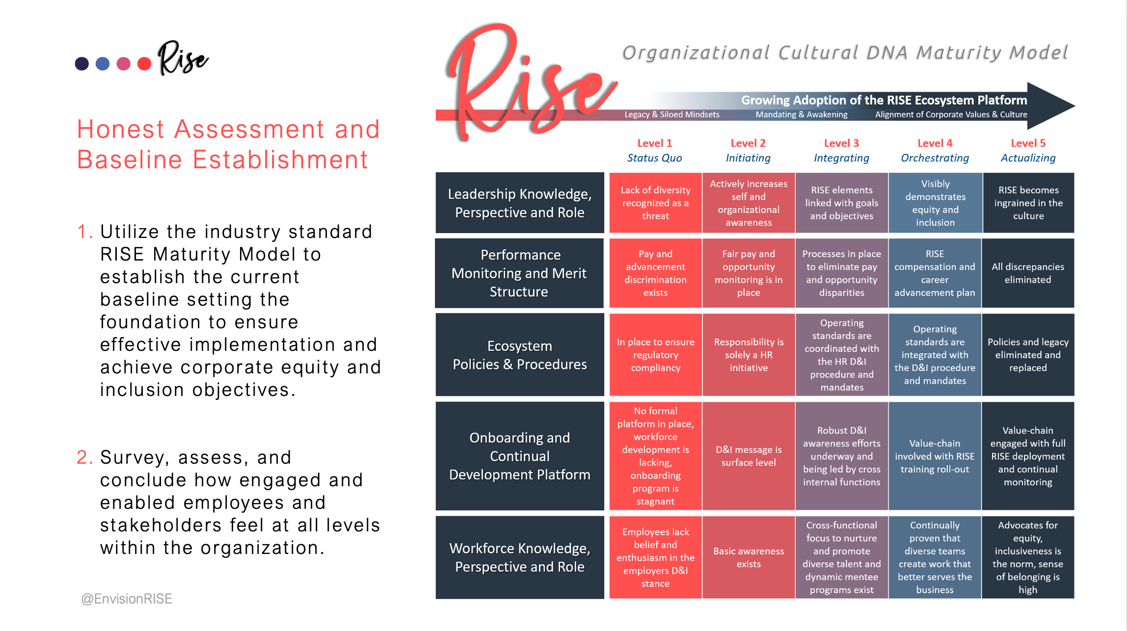 RISE-09 is part of the RISE Cultural Competency Certification Platform, an intensive nine-course series that will bolster your understanding of modern HRM standards, diversity and inclusion in the workplace, and the required organizational change management. These courses take an unyielding personal inventory of aspects of your own thinking related to the level of commitment that is necessary to bring about change and how to continually measure and monitor the desired outcomes.