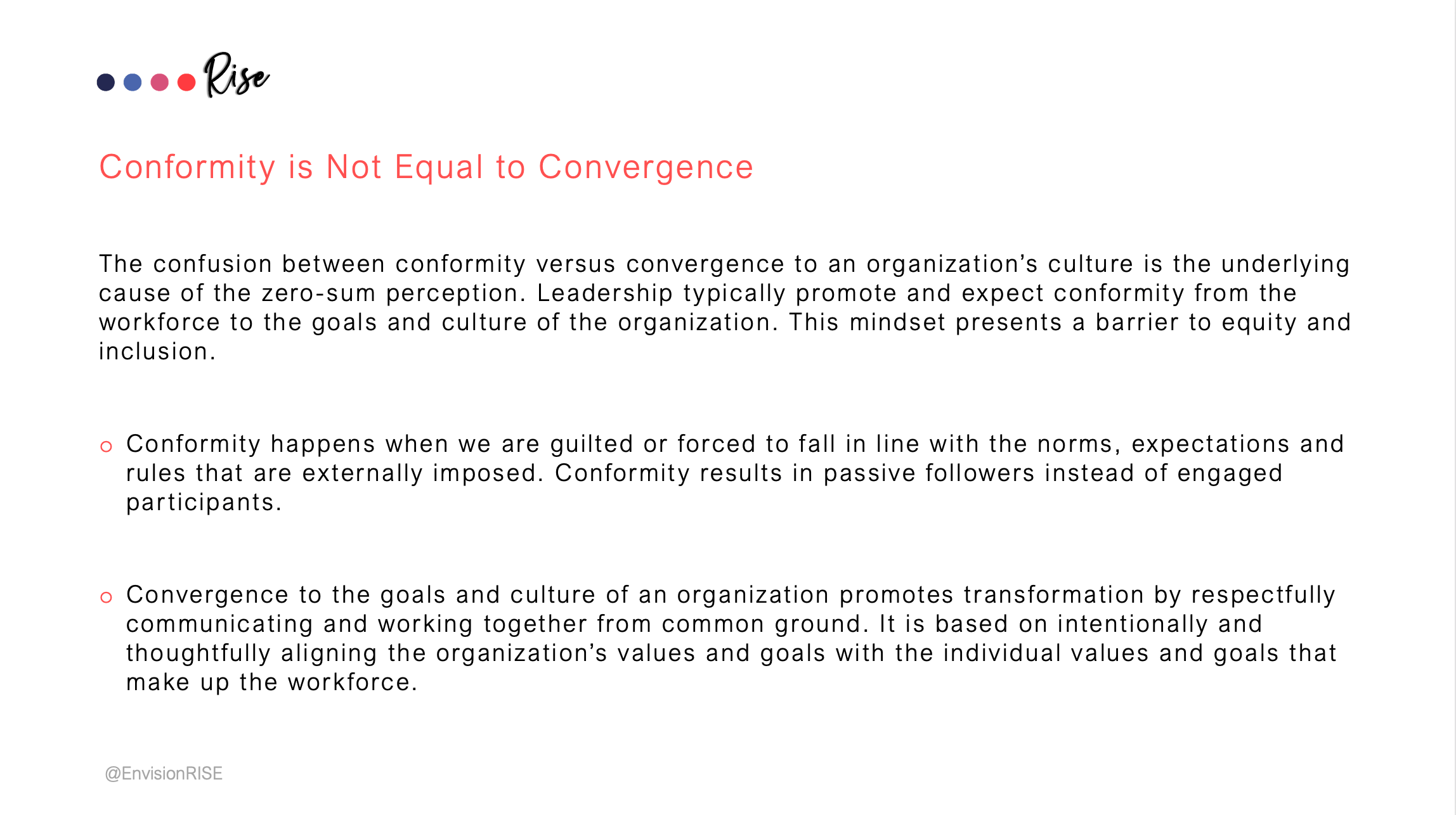 Inclusion is not a zero-sum game. The resistance of executive leadership teams to real organizational inclusiveness is often rooted in the misconception that it is ultimately a zero-sum game. This perception is often invasive across the general workforce.